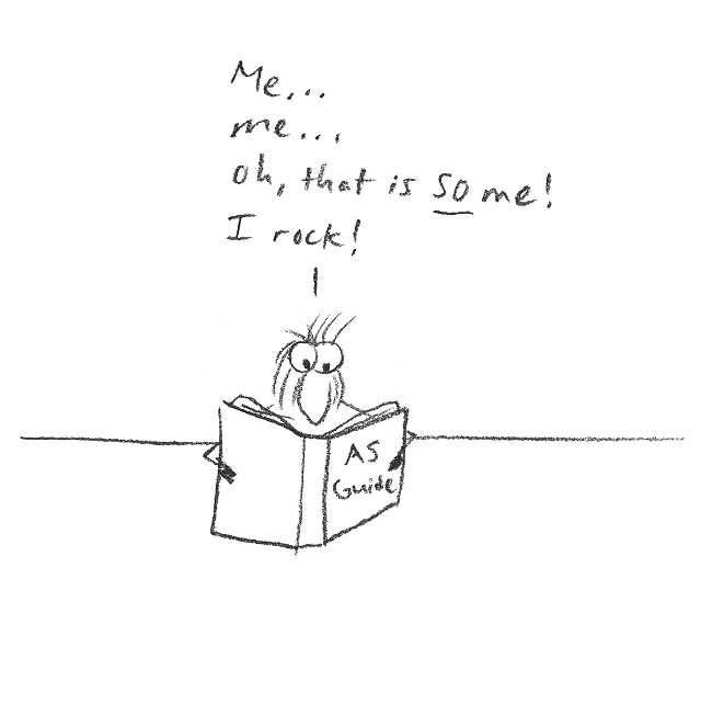 While Asperger’s can be diagnosed professionally, many adults like me are self-diagnosed. Once I learned what Asperger’s is, I knew it described me. It answered a lot of questions and explained why I am the way I am. So it was kind of good news! Like finding a box I fit in.
